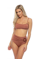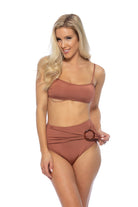 SOLID BANDEAU BIKINI SET WITH RING ACCENT