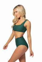 SOLID GREEN TEXTURED SCALLOP BIKINI