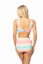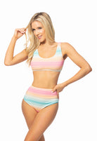 TEXTURED STRIPED SCOOP HIGH WAIST BIKINI