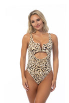 - Ribbed leopard one piece swimsuit