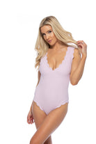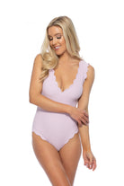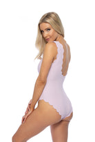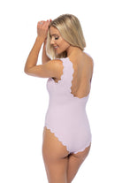 SOLID SCALLOP V-NECK ONE PIECE SWIMSUIT