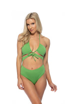 SOLID TIE FRONT CUTOUT ONE PIECE